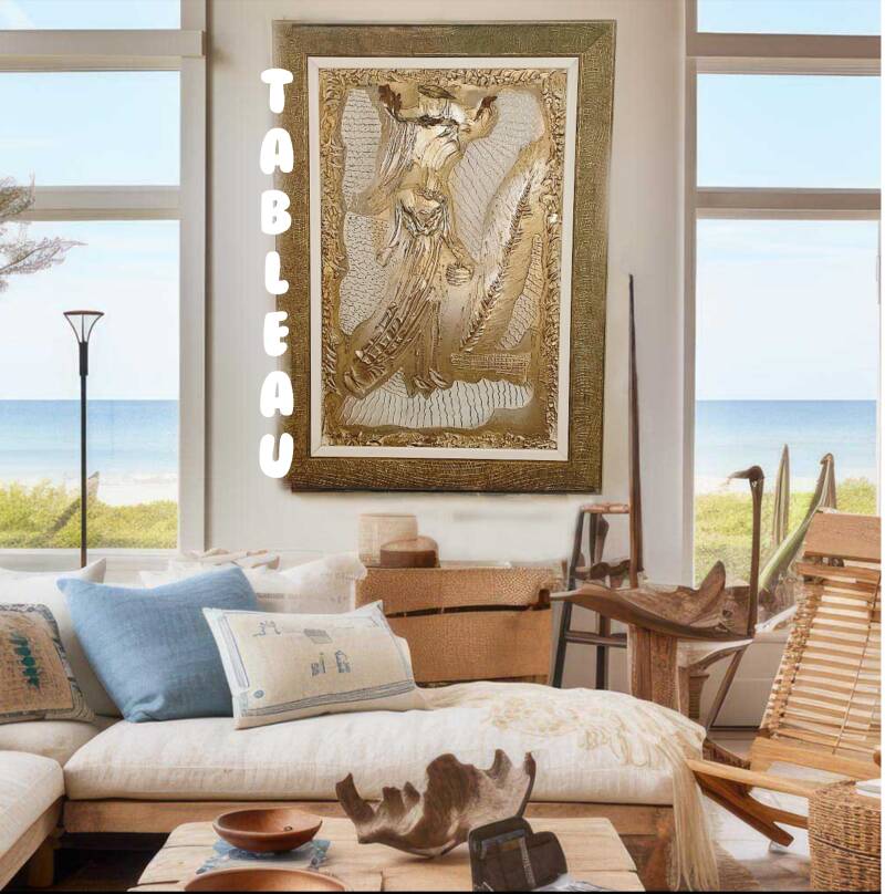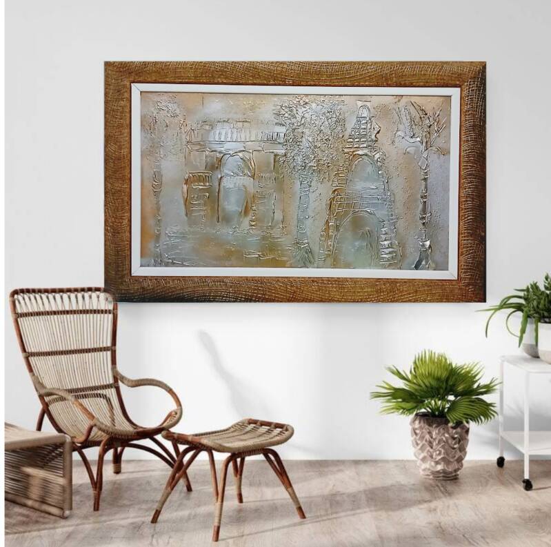Peinture sur toile au couteau reliefs or cuivre argent et bronze