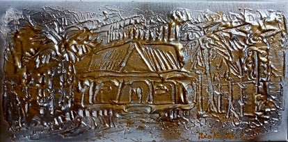 Peinture sur toile au couteau relief or cuivre argent et bronze