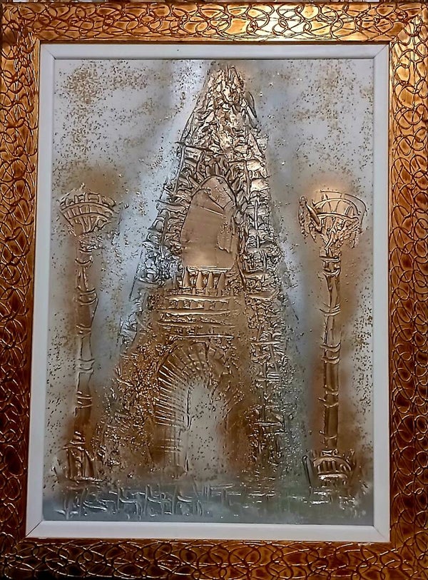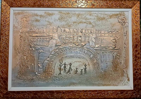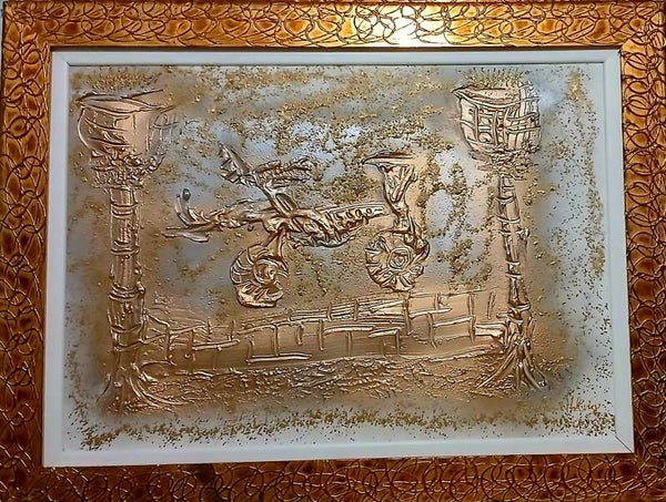 Peinture sur toile au couteau reliefs or cuivre argent et bronze
